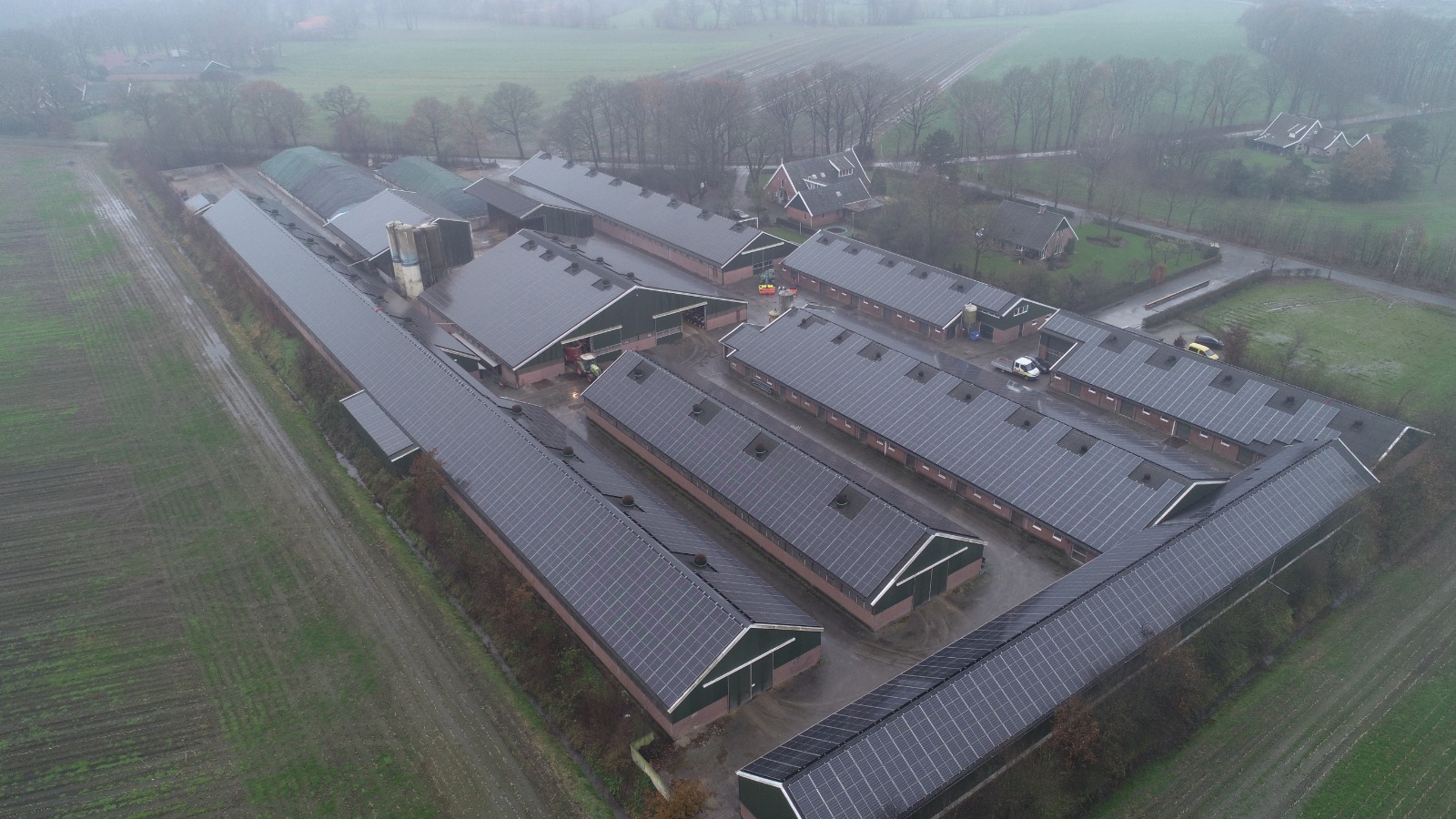 Zonnepanelen op het dak van kalverbedrijf Ruhenberg.