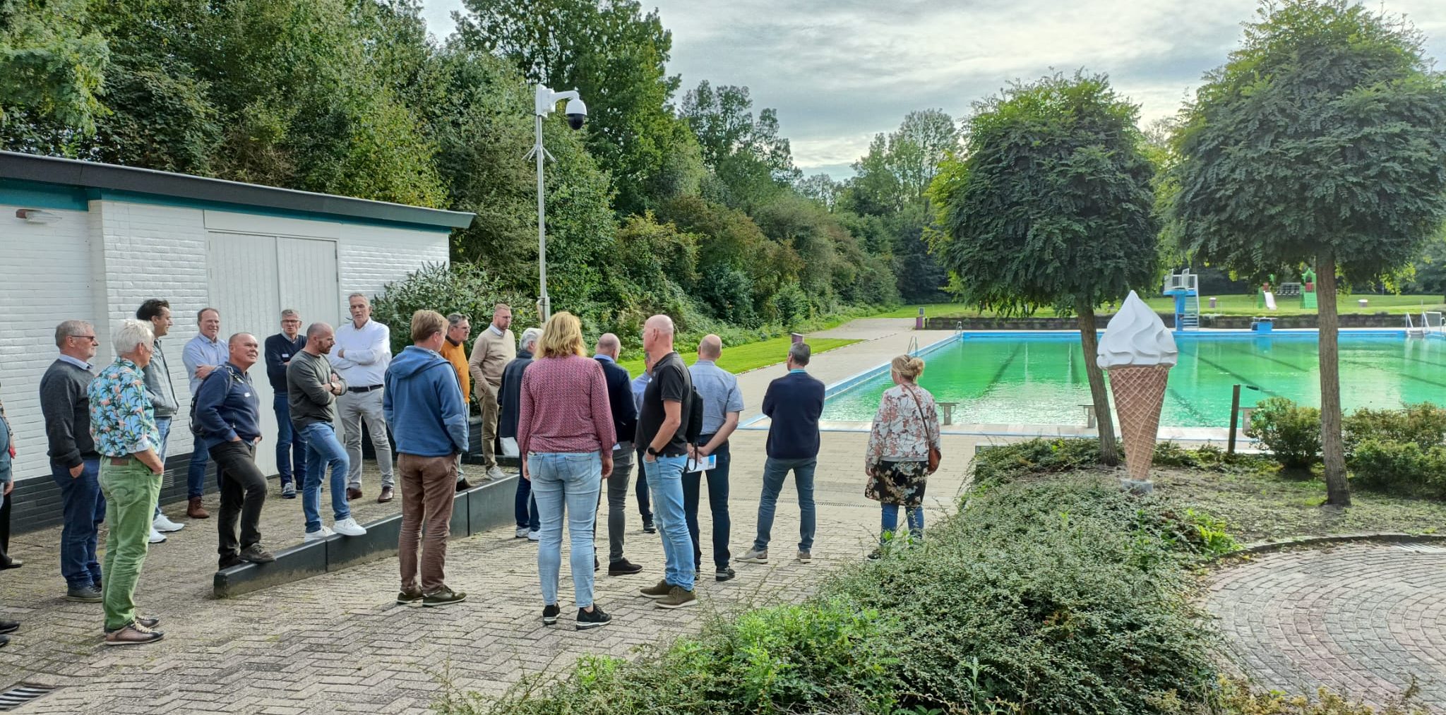 Ons zwembad gaan we revitaliseren. We hebben alle opties overwogen: van sluiten tot nieuwbouw en alles daartussenin. Nu is besloten een plan te maken voor vijf jaar. We vervangen de WKK (Warmte Kracht Koppeling) en maken een overkapping voor het buitenbad. Wij zijn aan het nadenken wat we over vijf jaar kunnen doen. En laat me graag inspireren door de mooie voorbeelden in de omgeving. Zoals het buitenzwembad in Delden, waar we met het ontzorgingsprogramma gingen kijken. Maar ook het voorbeeld van Vriezeveen, waar een nieuw all-electric zwembad is neergezet voor 11,5 miljoen euro. Je moet soms een beetje lef tonen vind ik en de koe bij de horens pakken. Dat proberen wij te doen. Plannen maken, processen standaardiseren, goede werkafspraken maken en de voortgang erin houden.’