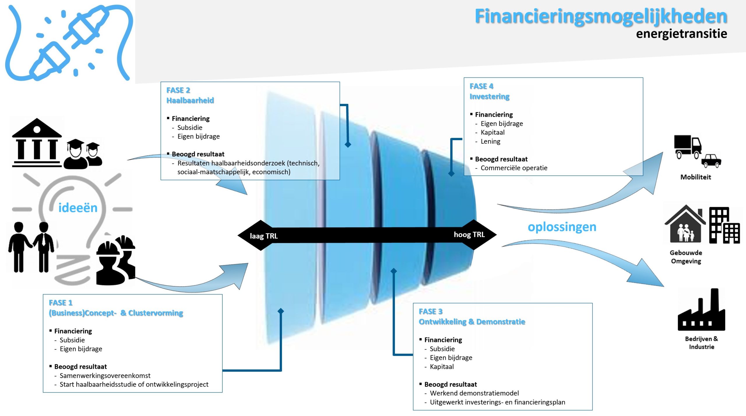 Voor ondernemers zijn er diverse financieringsmogelijkheden, privaat en publiek. In het publieke domein zijn er naast normale leningen en kapitaalverstrekkingen (EFO en Oost NL) mogelijkheden voor subsidies (zoals EFRO, Europees Fonds voor Regionale Ontwikkeling). Maar er is in 2022 ook nog ruimte voor enkele innovatievouchers vanuit het eigen programma, als stimulans voor ontwikkeling van energie-innovaties in de bestaande gebouwde omgeving en in het MKB. De hoogte van deze Innovatie vouchers variëren van 5.000 tot maximaal 10.000 euro, afhankelijk van de vraag.