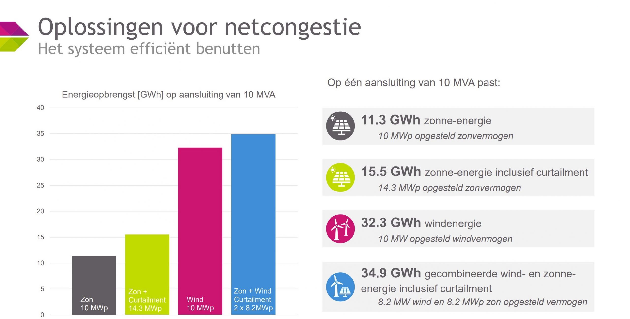 Naast netwerkuitbreidingen is ook het efficiënter gebruiken van het bestaande en toekomstige netwerk belangrijk. Je kunt daarbij denken aan een betere verhouding aan zon- en windenergie. Voor het opwekken van een gelijke hoeveelheid energie door middel van wind leg je bijna 3x minder beslag op de infrastructuur dan wanneer je dit puur met zon zou doen. Je kunt dus, met hetzelfde netwerk, veel meer duurzame energie opwekken als je dit slim aanpakt. Daarnaast curtailment, cable-pooling, etc. zaken die ervoor kunnen zorgen dat het netwerk veel efficiënter wordt benut. De verschillende oplossingen zijn samengevat in de handreiking “Transportcapaciteit efficiënt gebruiken: oplossingsrichtingen” die door Enexis Netbeheer is gepubliceerd.