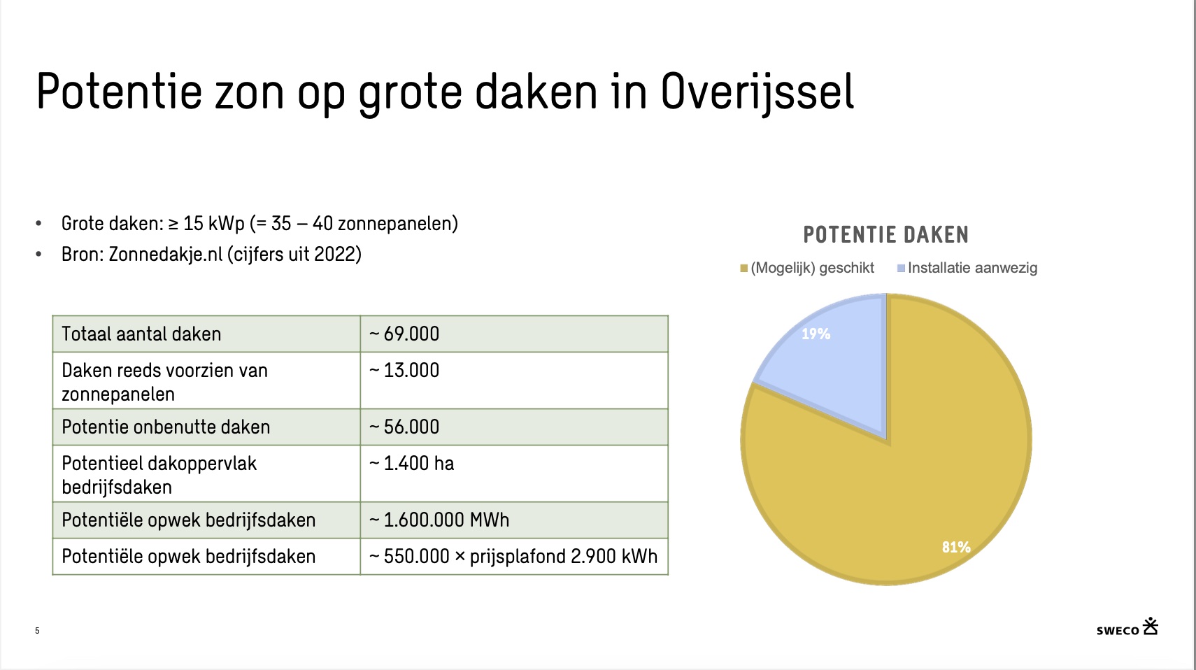 Ook zijn er nog veel onbenutte daken in de provincie, die mogelijk wel geschikt zouden kunnen zijn. Als we al deze daken zouden bedekken met zonnepanelen, dan zouden we daarmee (in theorie) ruim een half miljoen Overijsselse huishoudens kunnen voorzien!