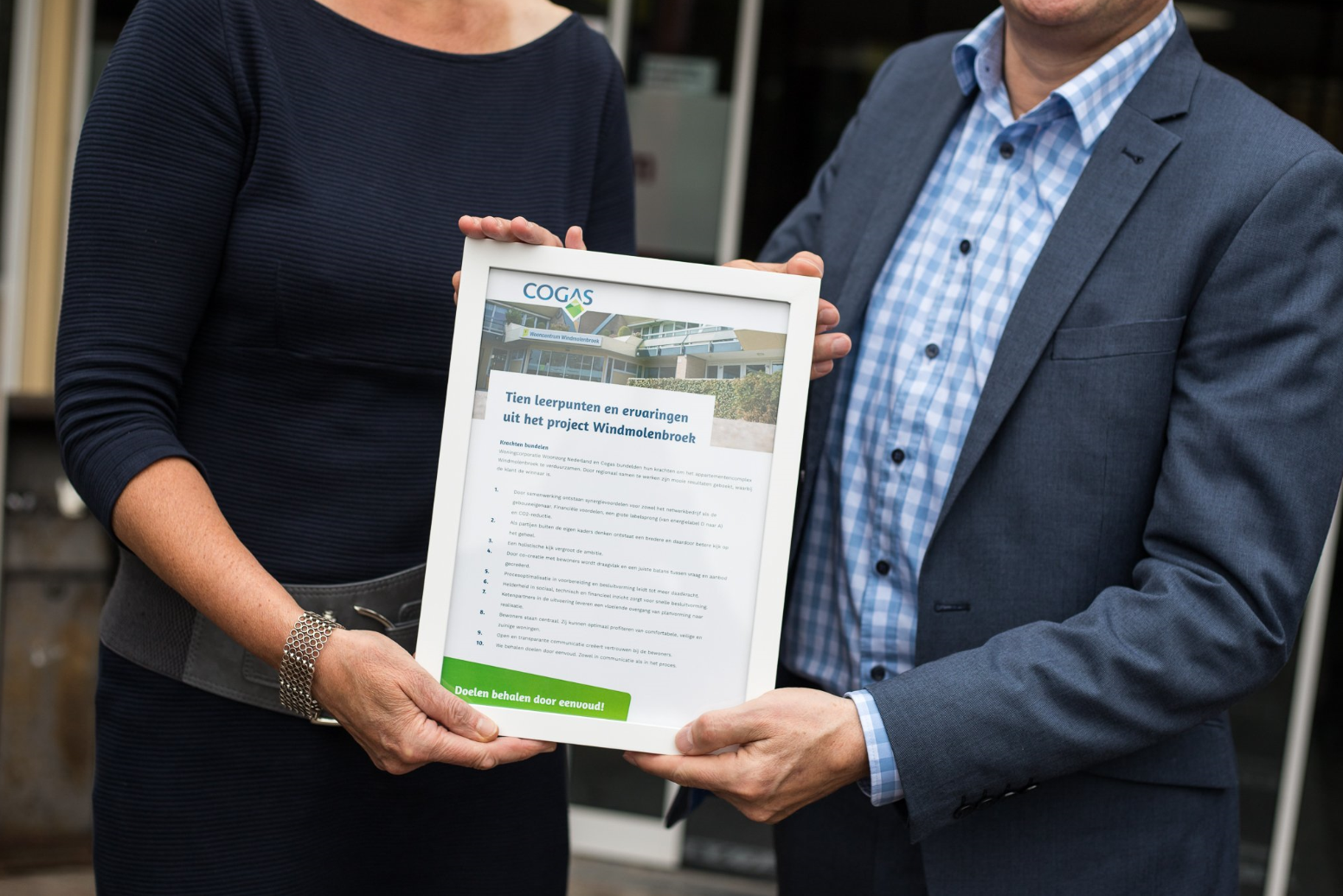 De verduurzaming van het wooncomplex, waarvoor op dit moment de werkzaamheden plaatsvinden, is een pilotproject van seniorenwoningcorporatie Woonzorg Nederland en netbeheerder Cogas. Zij hebben de hand ineen geslagen en zijn met actieve betrokkenheid van bewoners op zoek gegaan naar mogelijkheden het pand te verduurzamen. Bewoners zagen tijdens informatiebijeenkomsten in een proefwoning met eigen ogen wat nodig is om het complex duurzamer te maken en wat dit betekent voor hun woning en portemonnee. Het project laat zien wat een mooie resultaten die intensieve betrokkenheid kan opleveren: bijna 100% deelname van bewoners.