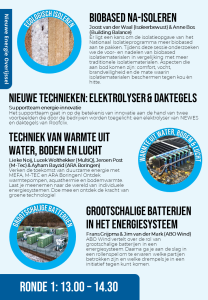 Er is een mooi programma met een paar lezingen (als uitzondering! 😉) en vooral veel praktische sessies waar we zo veel mogelijk fysiek aan de slag gaan met de verschillende technieken die bij de energietransitie komen kijken, zoals groen gas, batterijen, waterstof, biobased isoleren en warmte uit water, bodem en lucht. De locatie is de Gasfabriek in Deventer.