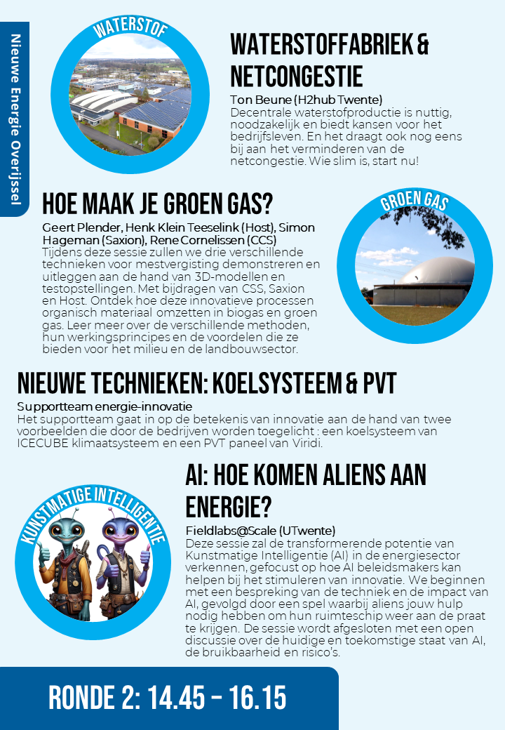 Er is een mooi programma met een paar lezingen (als uitzondering! 😉) en vooral veel praktische sessies waar we zo veel mogelijk fysiek aan de slag gaan met de verschillende technieken die bij de energietransitie komen kijken, zoals groen gas, batterijen, waterstof, biobased isoleren en warmte uit water, bodem en lucht. De locatie is de Gasfabriek in Deventer.