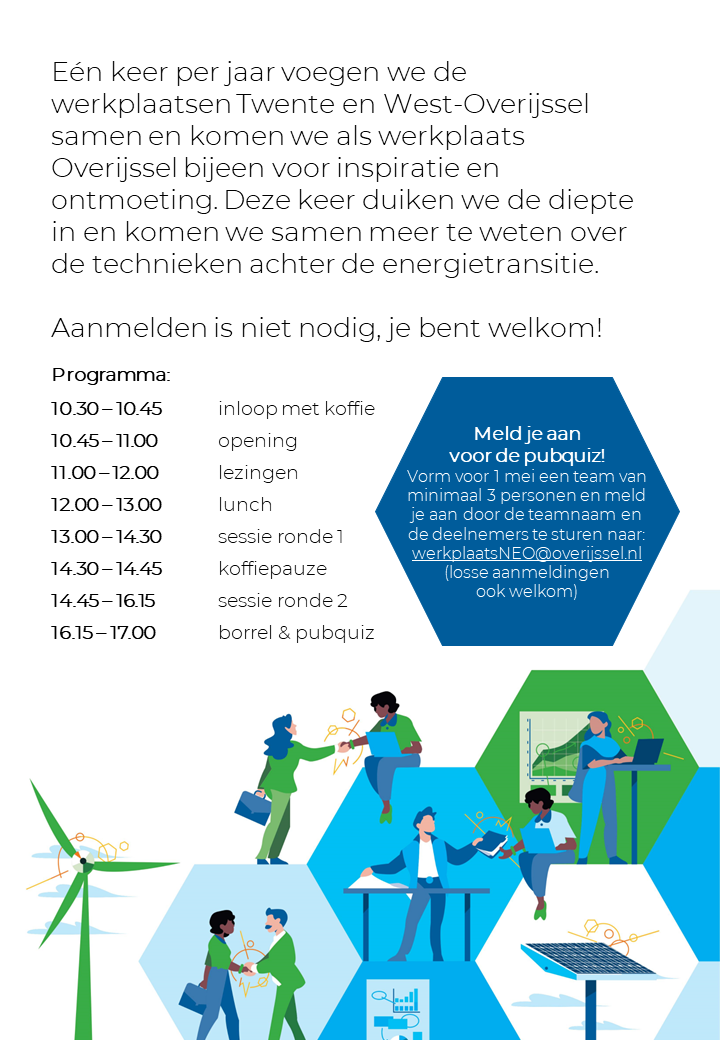 Vorm een team van minimaal 3 personen en bedenk een teamnaam en meld je hier aan: werkplaatsNEO@overijssel.nl.
