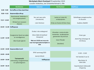 Op de Werkplaats komen kennis, ervaring en inspiratie inzake de energietransitie bij elkaar. Benut dit netwerk en ga aan de slag. Doe actief mee in een sessie. Samen kom je verder en zet jij de eerste en de volgende stap met jouw project. Wil je weten wat we gaan doen? Meld je dan aan via onderstaande link. Je ontvangt dan vrijblijvend het programma. Tot snel in de Werkplaats!