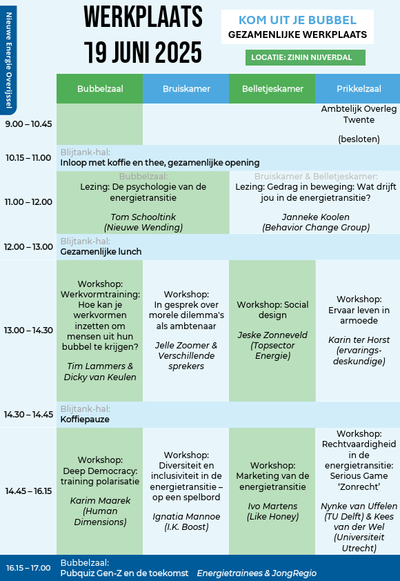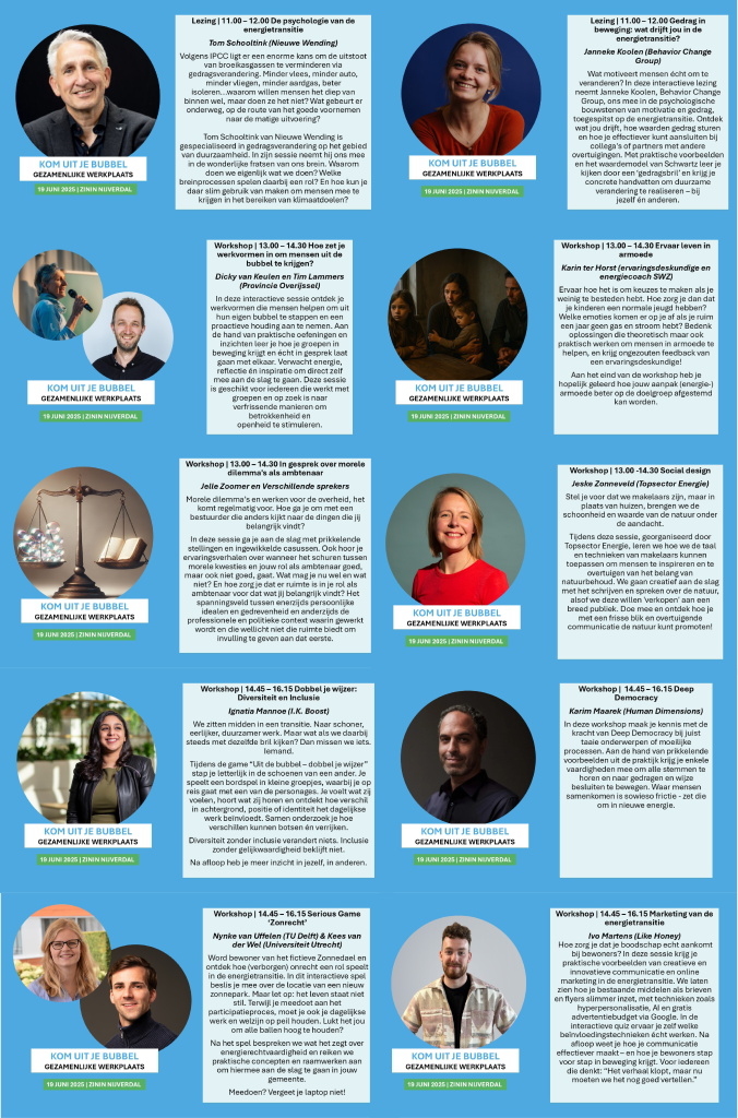 De gezamenlijke werkplaats van 2025 staat in het teken van grenzen verleggen, eens met een andere bril naar de uitdagingen van de energietransitie kijken, een beetje buiten je comfort zone stappen. Verder kijken dan de gemeentelijke bubbel, met als resultaat nieuwe perspectieven en inzichten voor het dagelijkse werk.