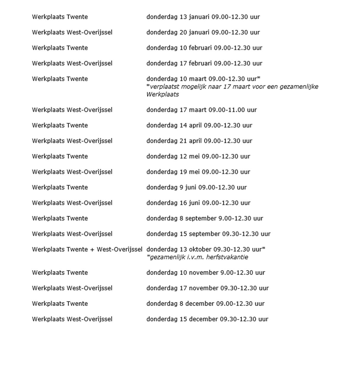 Iedere tweede donderdag van de maand is de werkplaats in Twente: